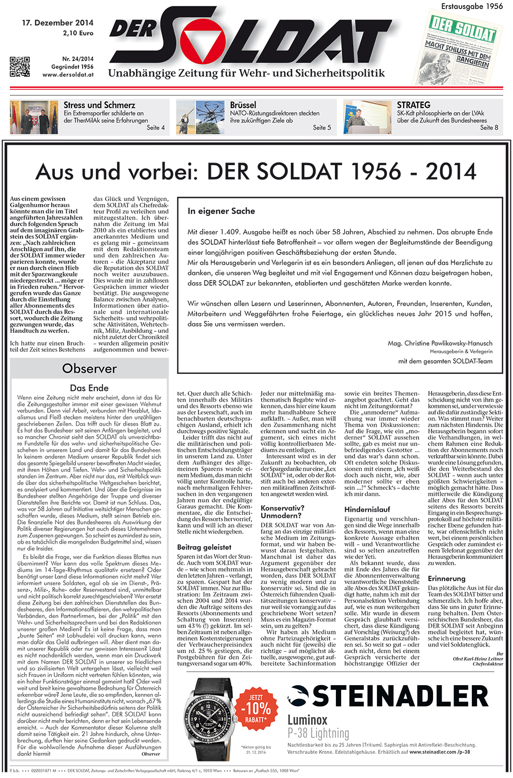 Am 17.12.2014 erschien die letzte Ausgabe von "Der Soldat".